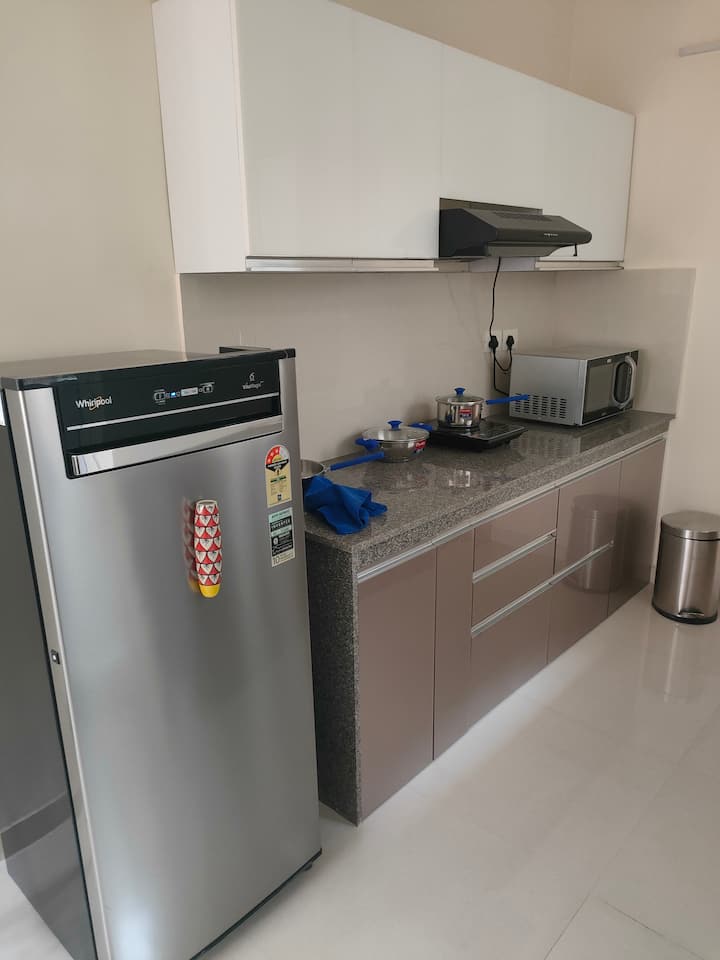 Cook your favorite meals with smart appliances including a refrigerator, toaster, electric kettle, cooker, microwave, and induction stove 🍴. The kitchen comes with complete kitchenware, including glasses, cups, plates, and induction-friendly utensils. You’ll also find pantry essentials like sugar,salt, coffee powder, and milk powder ☕.