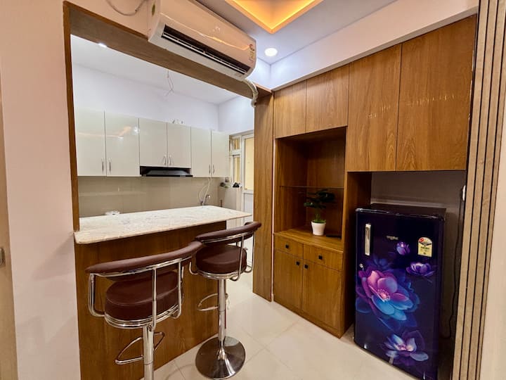 The kitchen comes with smart appliances π³ such as a refrigerator π§, toaster, electric kettle, cooker, microwave, and induction. Itβs fully stocked with glasses , cups, plates π½οΈ, and induction-friendly utensils, plus pantry essentials like tea π΅, coffee β, and milk powder.